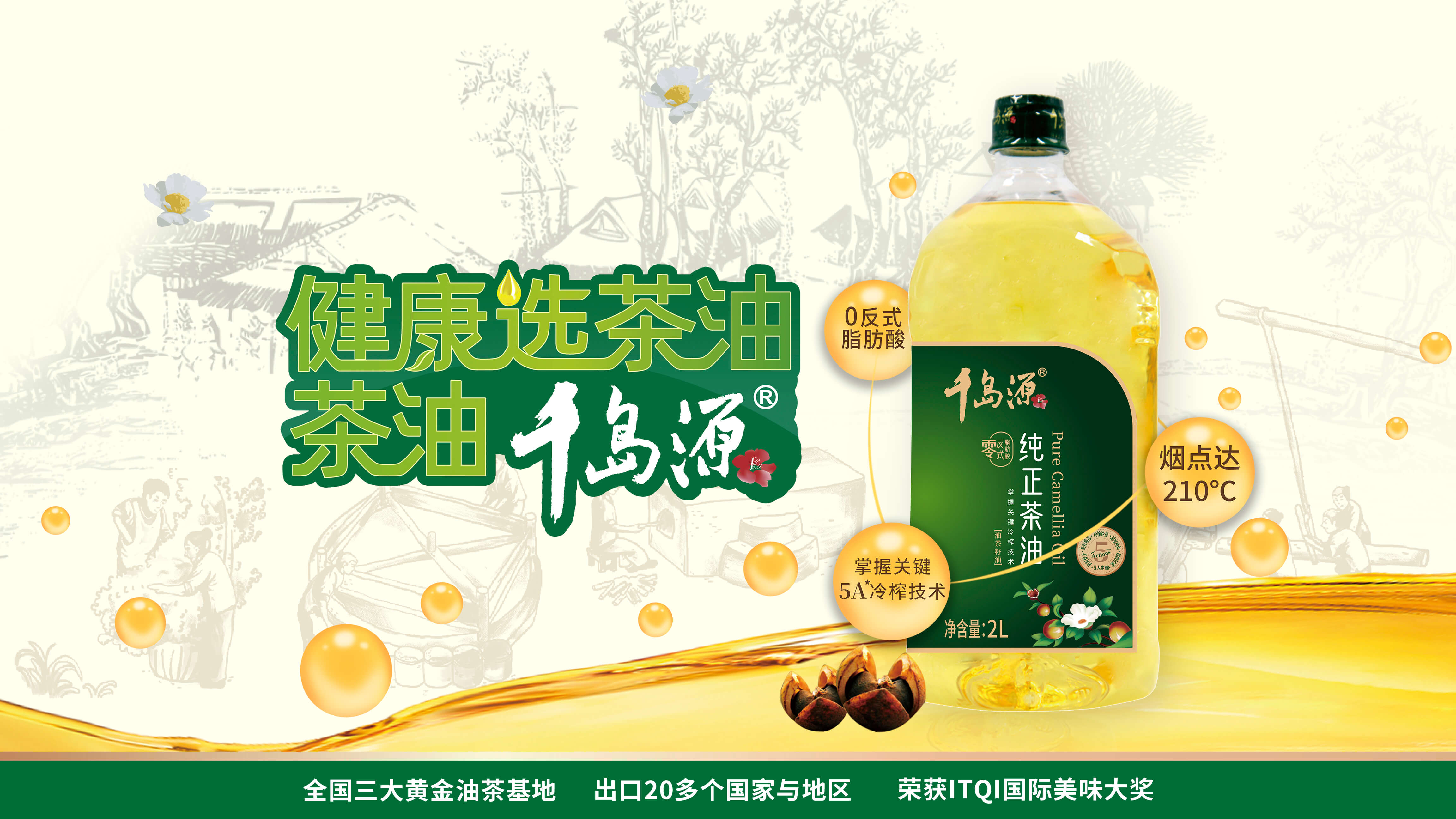 采用當(dāng)季高山新鮮有機(jī)油茶籽冷榨而成,取頭道冷榨油,采用烘焙留香和生香技術(shù),新鮮香濃,營(yíng)養(yǎng)豐富,堪稱茶油中的“土雞蛋”